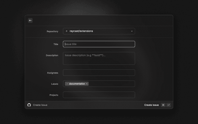 The following link can be used as a shortcut to create your token: https://github.com/settings/tokens/new?description=Raycast&scopes=repo,read:org,read:user,project,notifications
